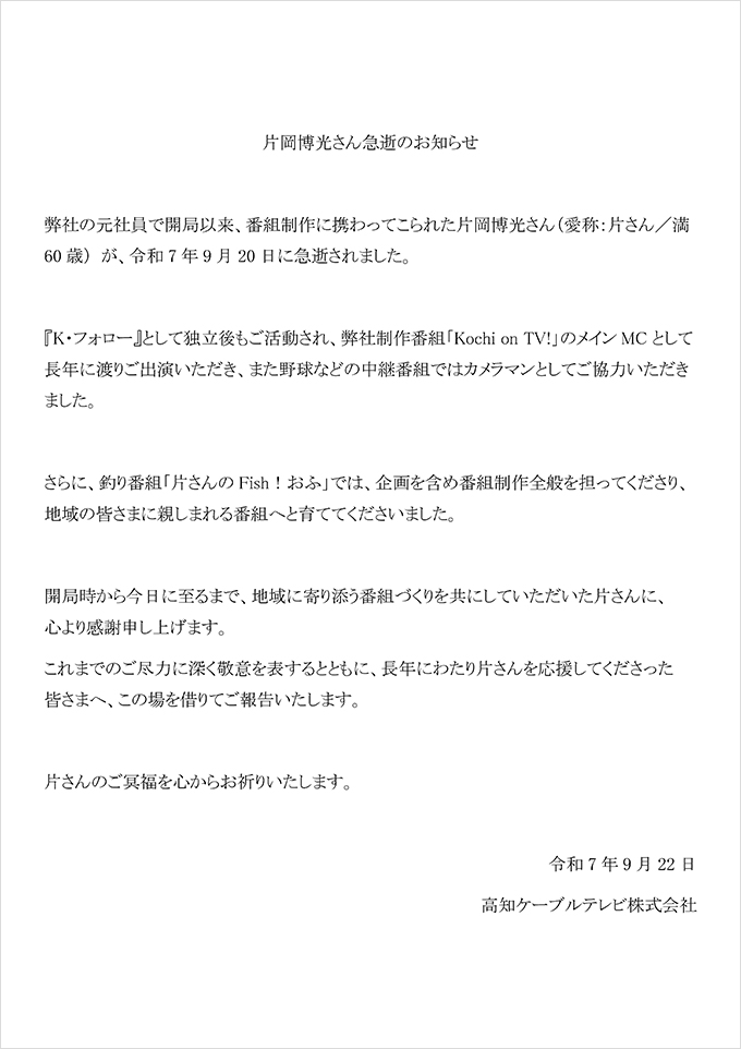 ホーム > お知らせ > 片岡博光さん急逝のお知らせ